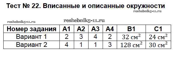 Решебник №2 / тест / тест №22. Вписанные и описанные окружности