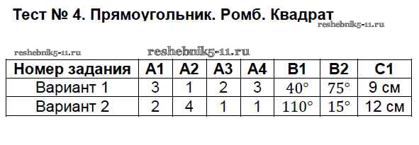 Решебник №2 / тест / тест №4. Прямоугольник. Ромб. Квадрат
