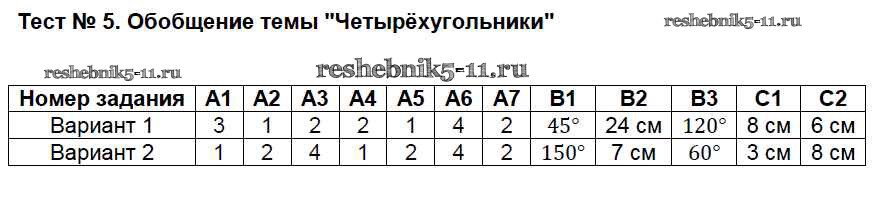 Решебник №2 / тест / тест №5. Обобщение темы - Четырёхугольники