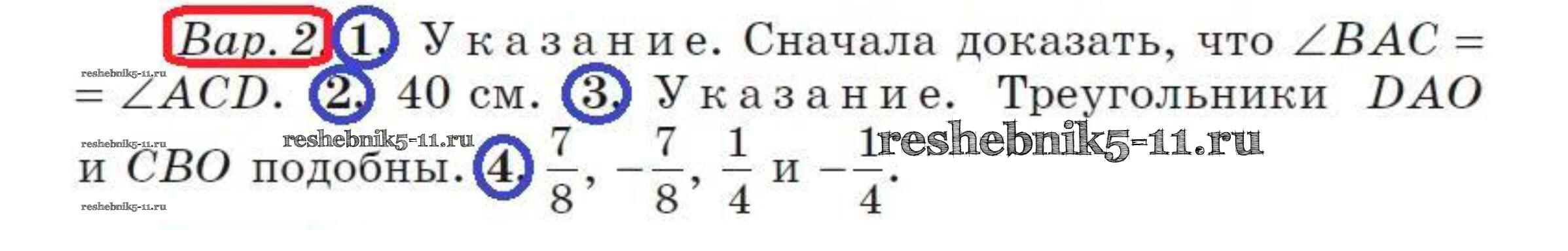 Готовая домашняя работа с ответами по Геометрии за 8 класс Бутузов, Кадомцев, Прасолов Дидактические материалы МГУ - школе Просвещение 2018 - Контрольная работа 4 (Варианты) 2