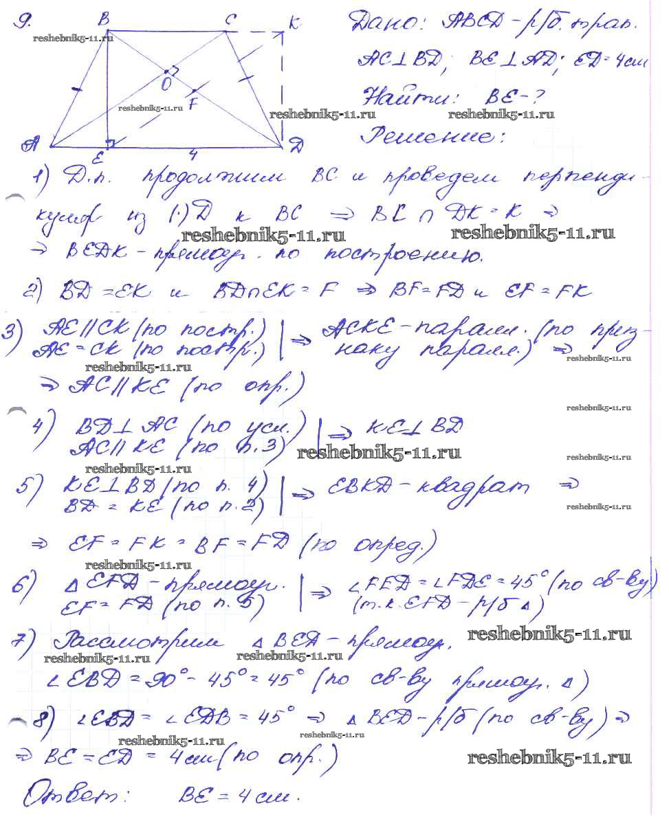 Готовая домашняя работа с ответами по Геометрии за 8 класс Зив, Мейлер Дидактические материалы Просвещение 2016 ФГОС - Вариант №1 9