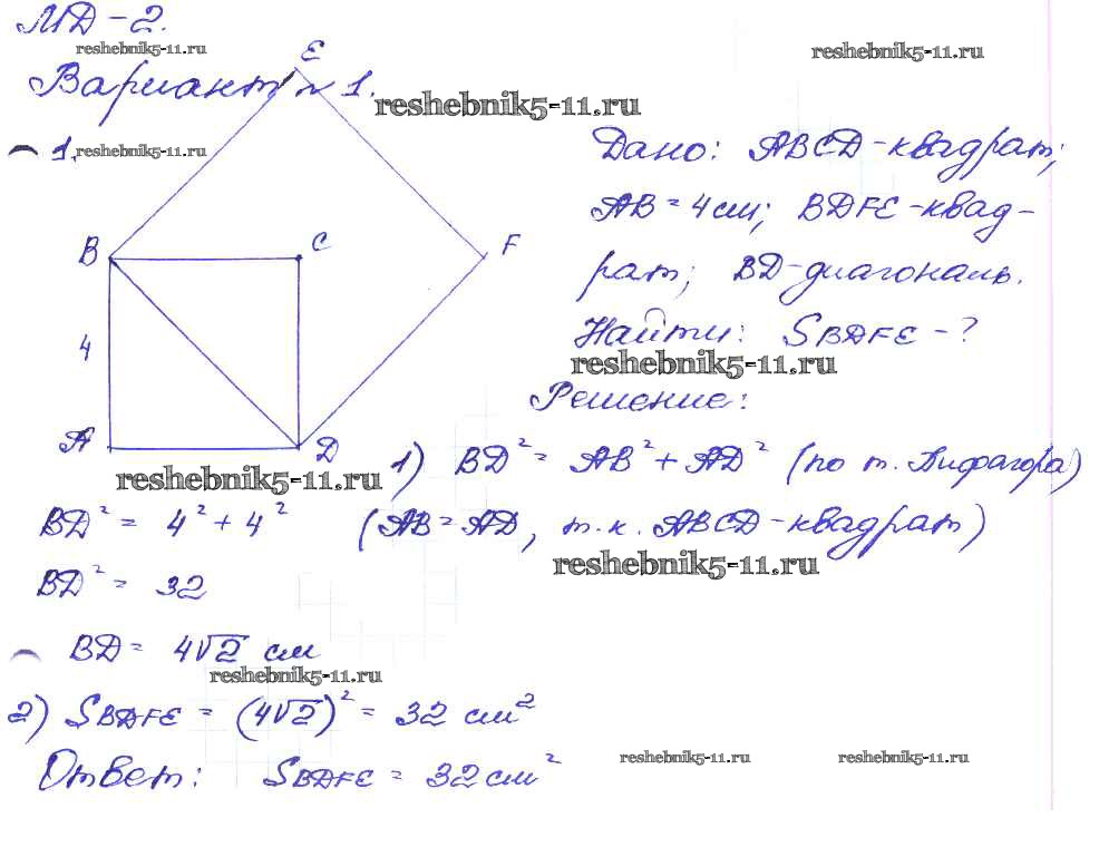 Готовая домашняя работа с ответами по Геометрии за 8 класс Зив, Мейлер Дидактические материалы Просвещение 2016 ФГОС - Вариант №1 1