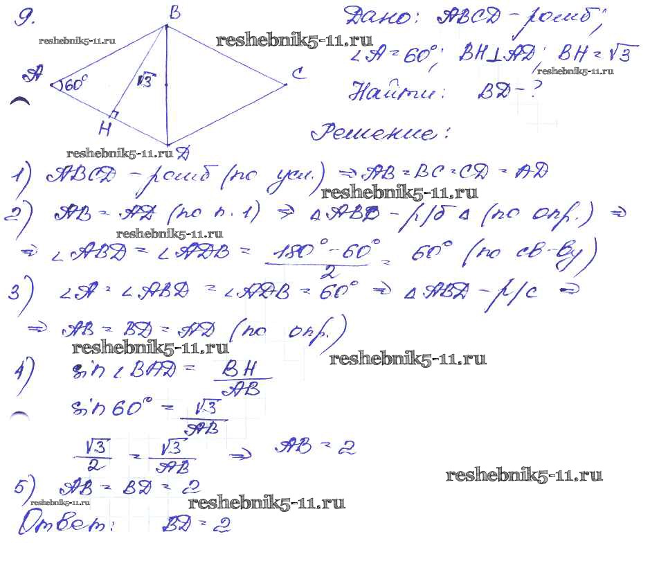 Готовая домашняя работа с ответами по Геометрии за 8 класс Зив, Мейлер Дидактические материалы Просвещение 2016 ФГОС - Вариант №2 9