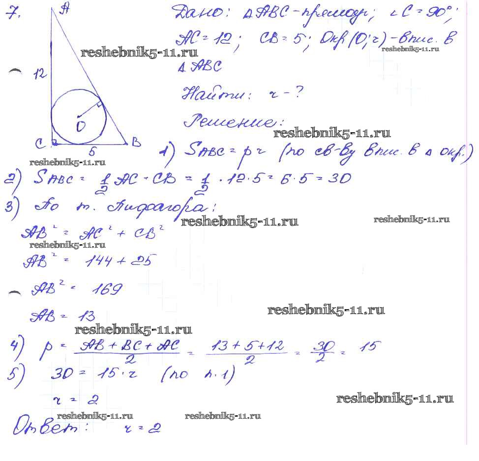 Готовая домашняя работа с ответами по Геометрии за 8 класс Зив, Мейлер Дидактические материалы Просвещение 2016 ФГОС - Вариант №1 7