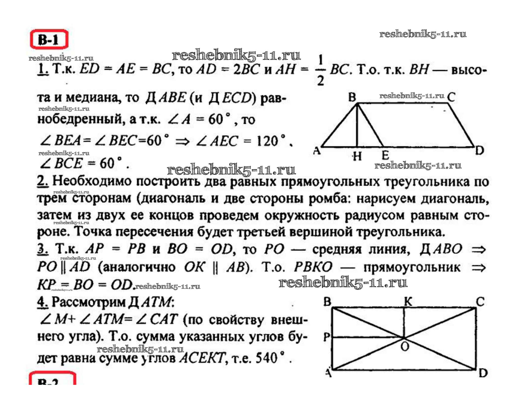 Готовая домашняя работа с ответами по Геометрии за 8 класс Зив, Мейлер Дидактические материалы Просвещение 2016 ФГОС - КР-1 Вариант 1