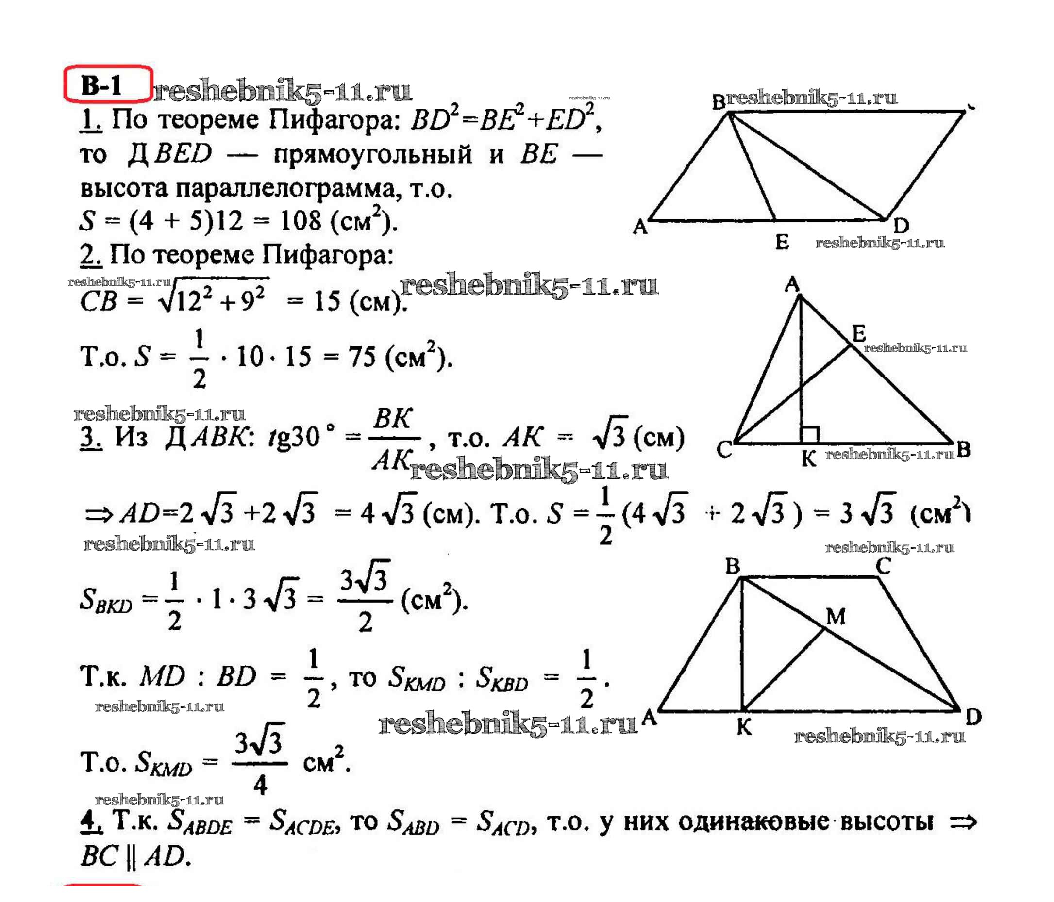 Готовая домашняя работа с ответами по Геометрии за 8 класс Зив, Мейлер Дидактические материалы Просвещение 2016 ФГОС - КР-2 Вариант 1