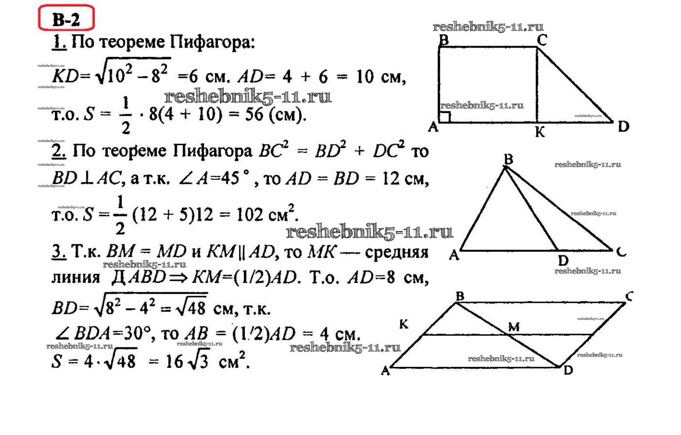 Готовая домашняя работа с ответами по Геометрии за 8 класс Зив, Мейлер Дидактические материалы Просвещение 2016 ФГОС - КР-2 Вариант 2