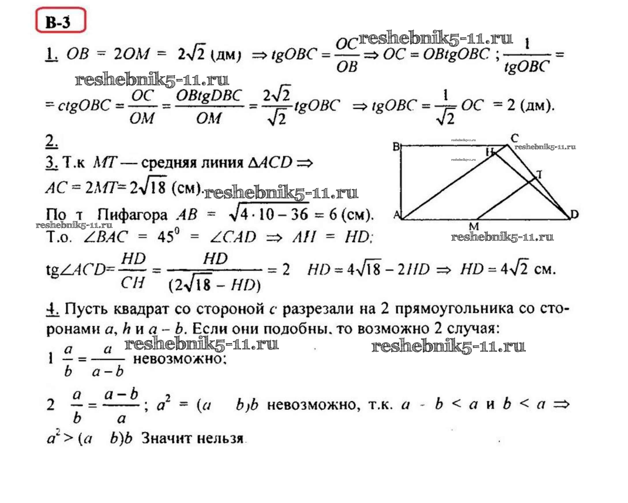 Готовая домашняя работа с ответами по Геометрии за 8 класс Зив, Мейлер Дидактические материалы Просвещение 2016 ФГОС - КР-4 Вариант 3