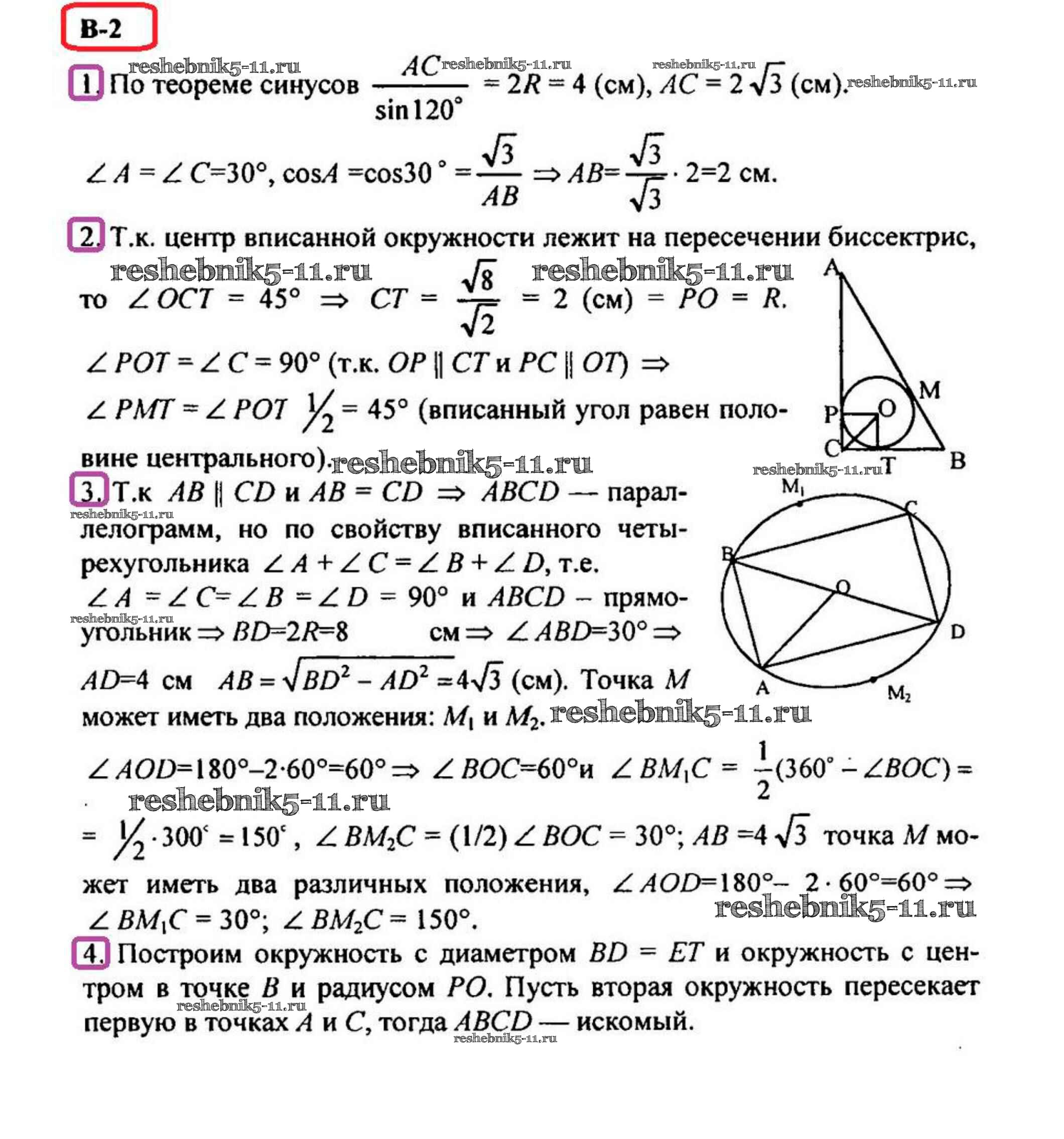 Готовая домашняя работа с ответами по Геометрии за 8 класс Зив, Мейлер Дидактические материалы Просвещение 2016 ФГОС - КР-5 Вариант 2