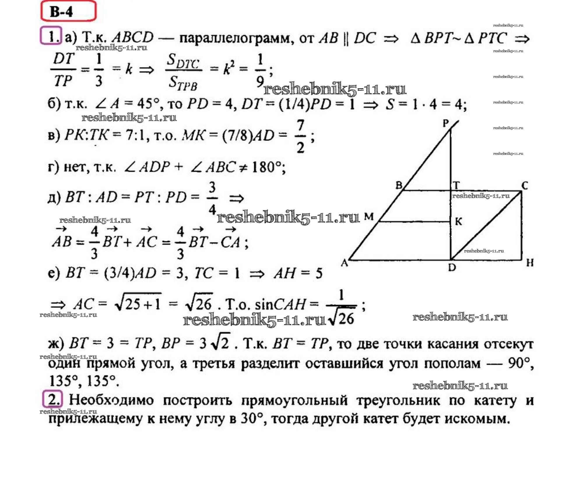 Готовая домашняя работа с ответами по Геометрии за 8 класс Зив, Мейлер Дидактические материалы Просвещение 2016 ФГОС - КР-7 Вариант 4