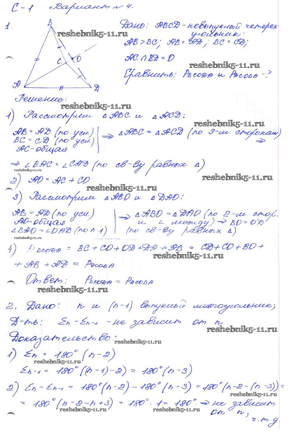 Готовая домашняя работа с ответами по Геометрии за 8 класс Зив, Мейлер Дидактические материалы Просвещение 2016 ФГОС - СР №1. Многоугольник, четырехугольник вариант-4