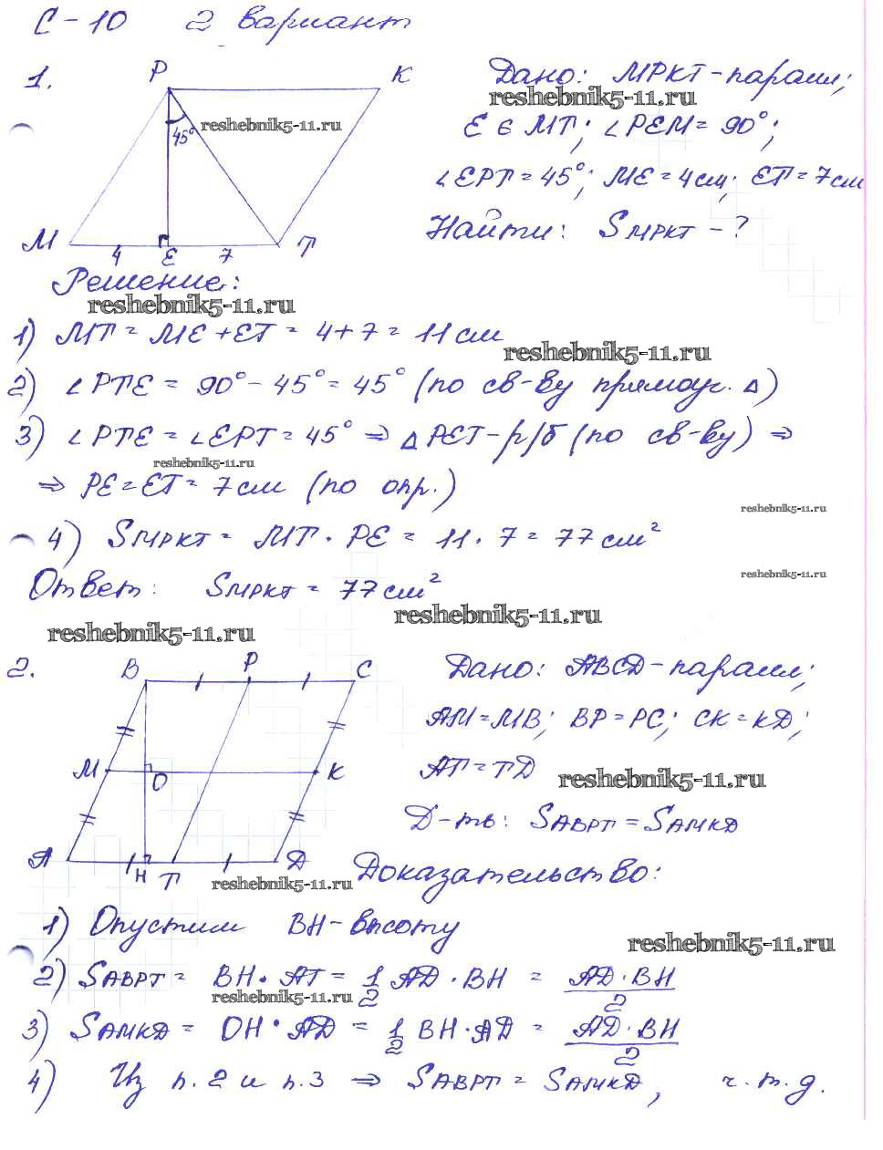Готовая домашняя работа с ответами по Геометрии за 8 класс Зив, Мейлер Дидактические материалы Просвещение 2016 ФГОС - СР №10. Площадь параллелограмма вариант-2