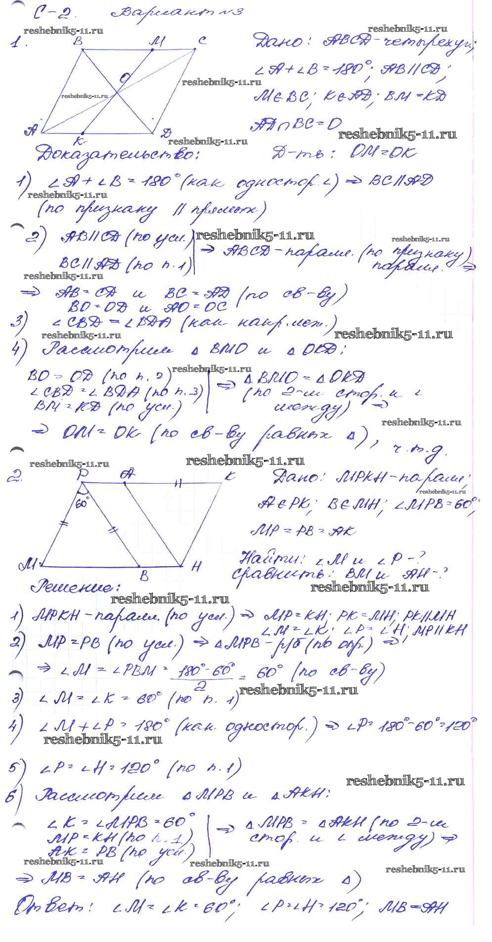Готовая домашняя работа с ответами по Геометрии за 8 класс Зив, Мейлер Дидактические материалы Просвещение 2016 ФГОС - СР №2. Параллелограмм и его свойства вариант-3
