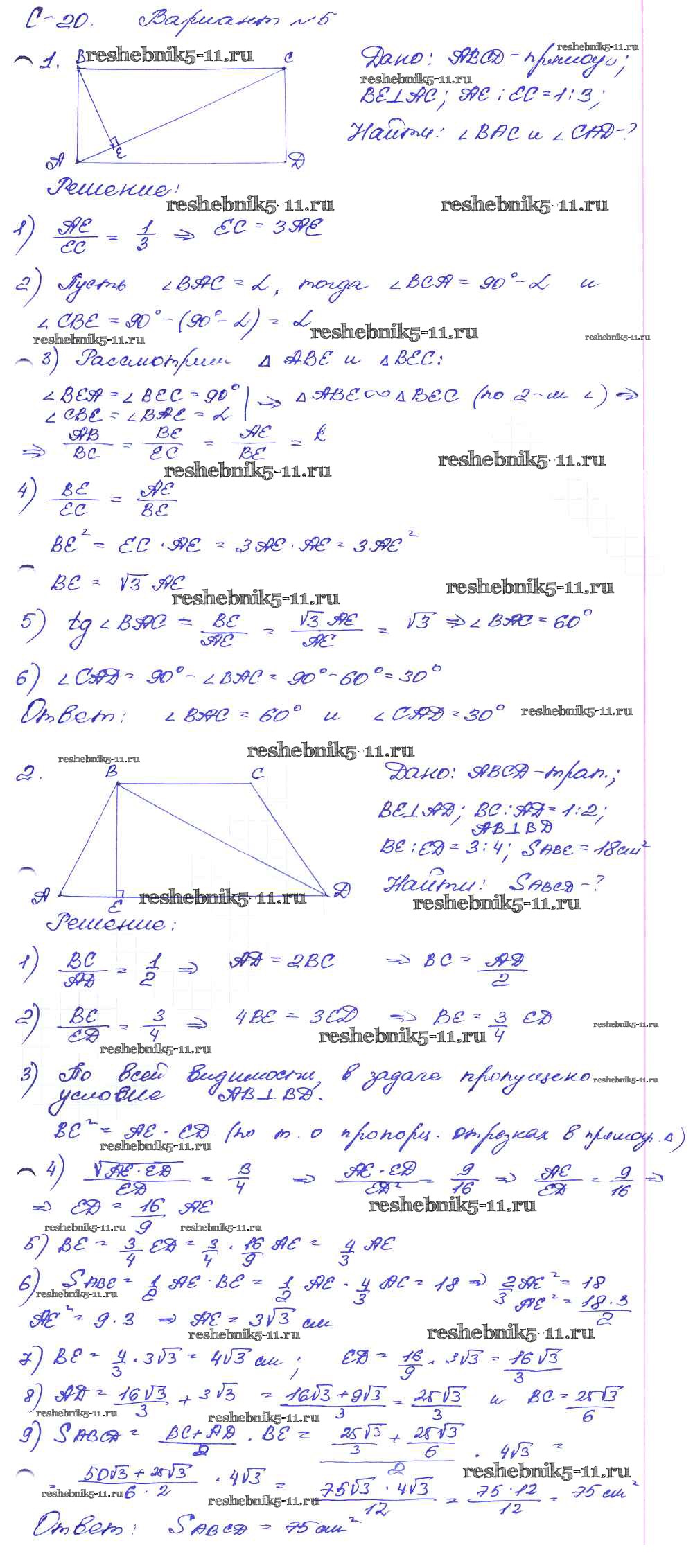 Решебник №1 / самостоятельная работа / ср №20 / вариант-5