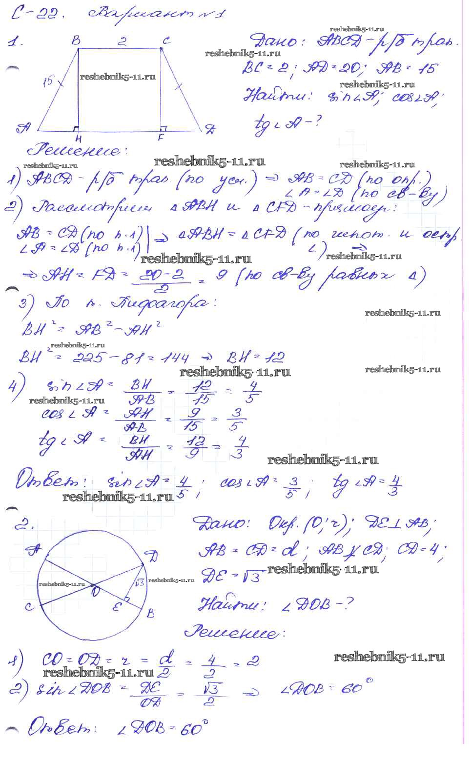 Решебник №1 / самостоятельная работа / ср №22 / вариант-1
