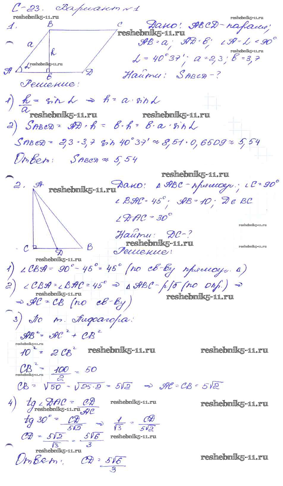 Решебник №1 / самостоятельная работа / ср №23 / вариант-1