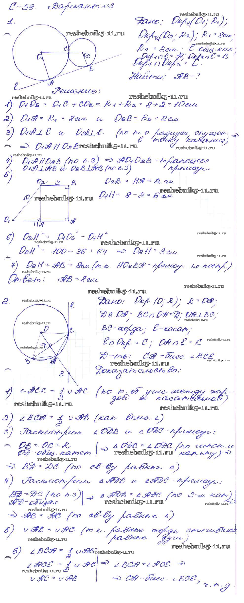 Готовая домашняя работа с ответами по Геометрии за 8 класс Зив, Мейлер Дидактические материалы Просвещение 2016 ФГОС - СР №28. Окружность вариант-3