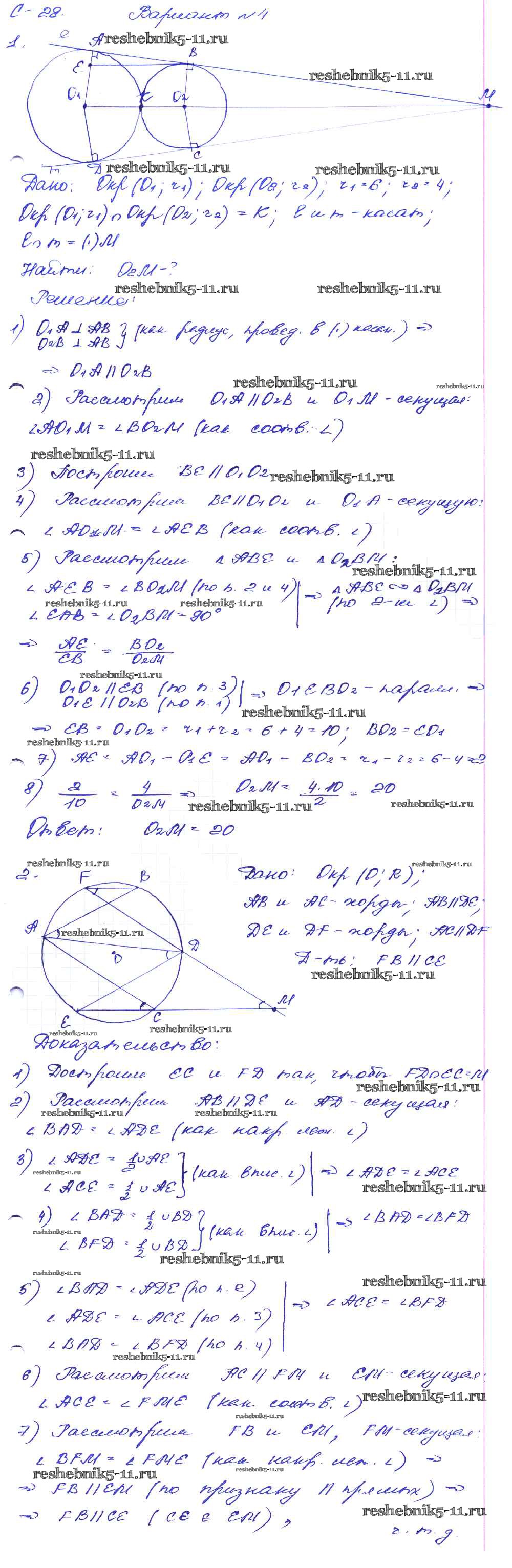 Готовая домашняя работа с ответами по Геометрии за 8 класс Зив, Мейлер Дидактические материалы Просвещение 2016 ФГОС - СР №28. Окружность вариант-4