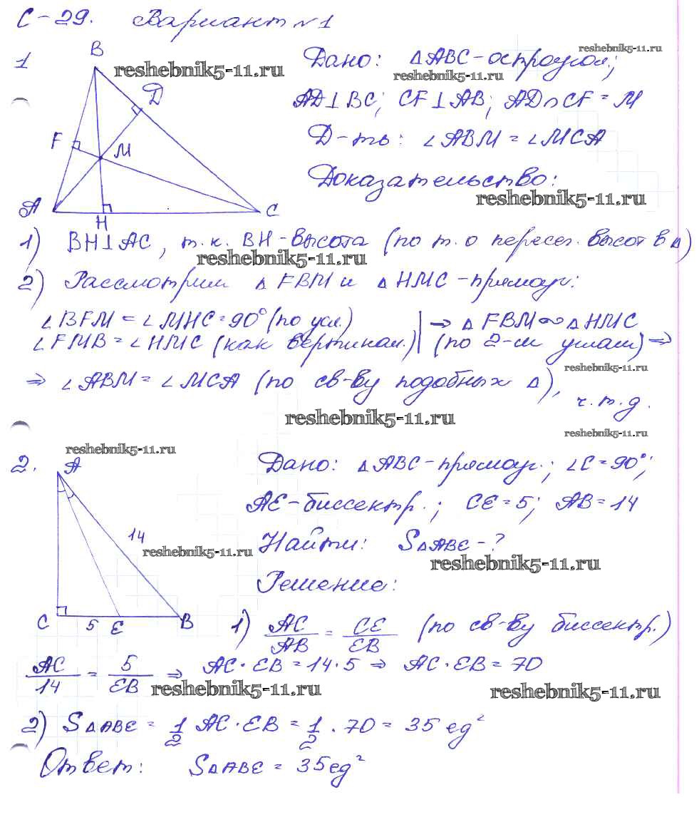 Решебник №1 / самостоятельная работа / ср №29 / вариант-1