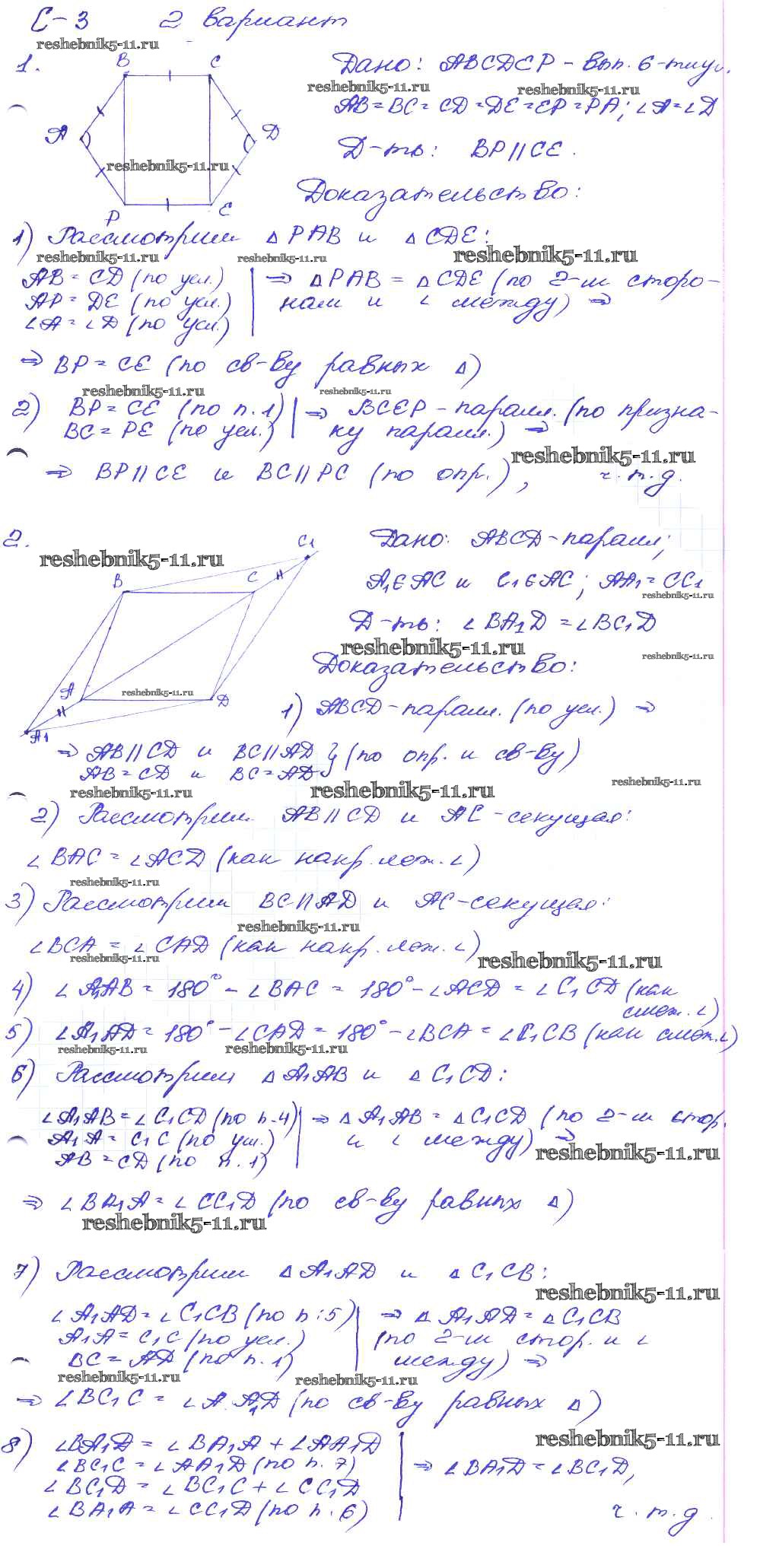 Готовая домашняя работа с ответами по Геометрии за 8 класс Зив, Мейлер Дидактические материалы Просвещение 2016 ФГОС - СР №3. Признаки параллелограмма вариант-2