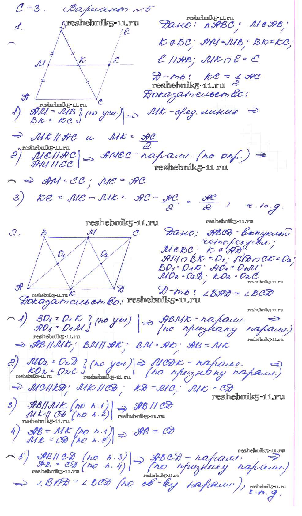 Готовая домашняя работа с ответами по Геометрии за 8 класс Зив, Мейлер Дидактические материалы Просвещение 2016 ФГОС - СР №3. Признаки параллелограмма вариант-5