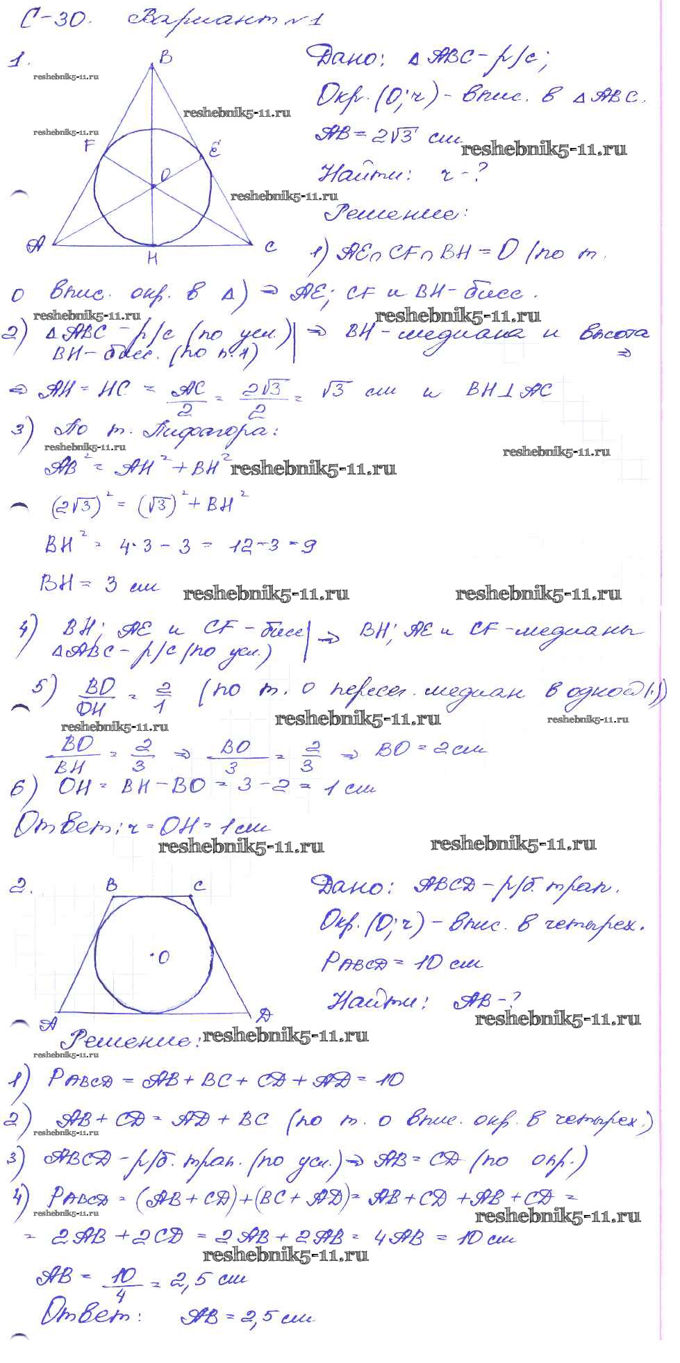 Решебник №1 / самостоятельная работа / ср №30 / вариант-1