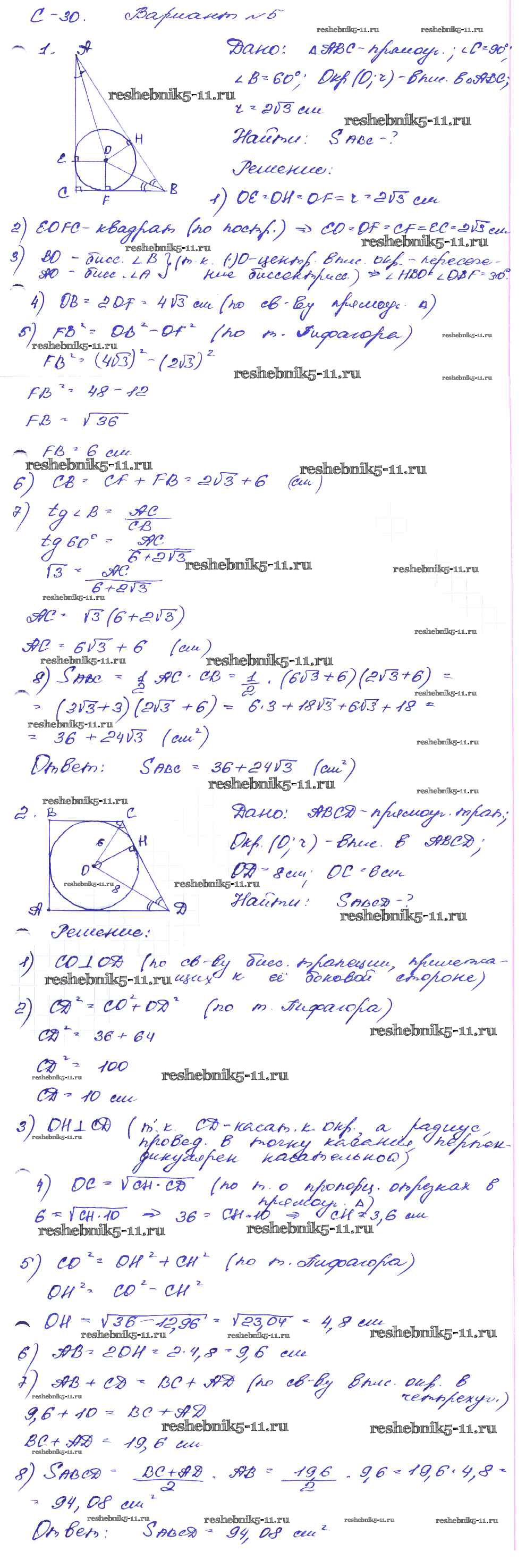 Готовая домашняя работа с ответами по Геометрии за 8 класс Зив, Мейлер Дидактические материалы Просвещение 2016 ФГОС - СР №30. Вписанная окружность вариант-5