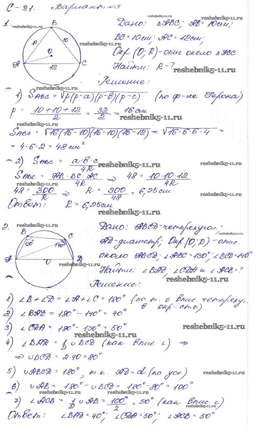 Готовая домашняя работа с ответами по Геометрии за 8 класс Зив, Мейлер Дидактические материалы Просвещение 2016 ФГОС - СР №31. Описанная окружность вариант-3