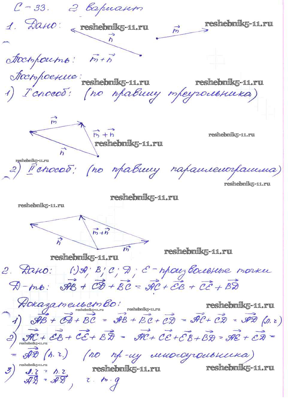 Готовая домашняя работа с ответами по Геометрии за 8 класс Зив, Мейлер Дидактические материалы Просвещение 2016 ФГОС - СР №33. Сложение векторов вариант-2