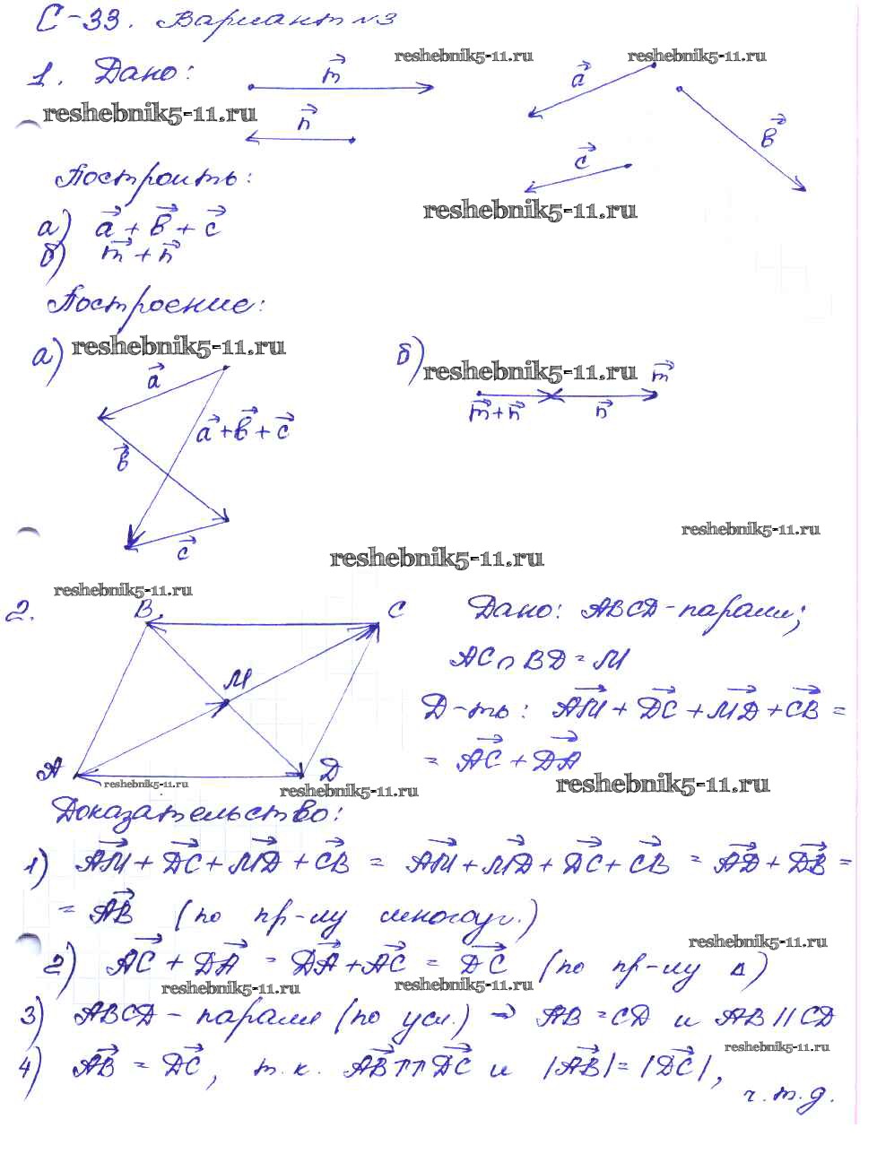 Готовая домашняя работа с ответами по Геометрии за 8 класс Зив, Мейлер Дидактические материалы Просвещение 2016 ФГОС - СР №33. Сложение векторов вариант-3