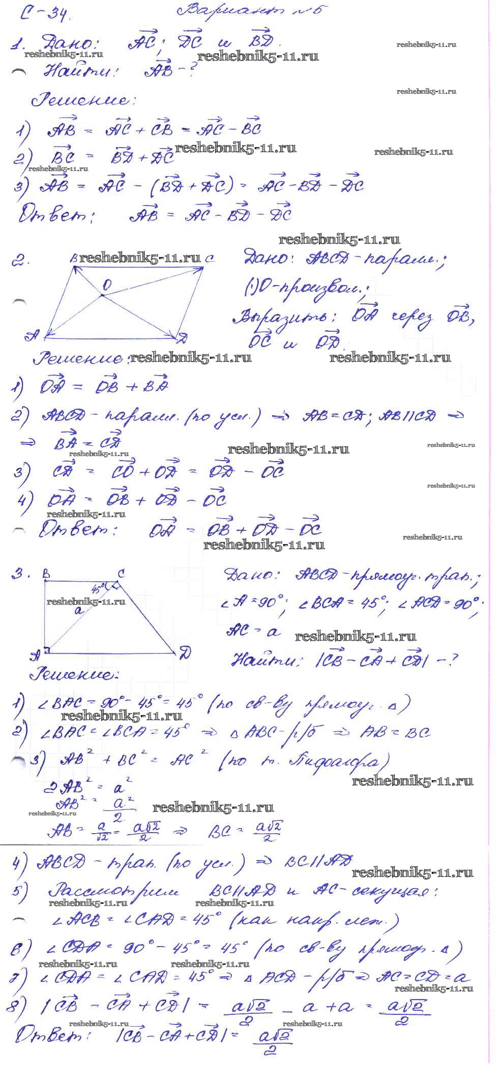 Готовая домашняя работа с ответами по Геометрии за 8 класс Зив, Мейлер Дидактические материалы Просвещение 2016 ФГОС - СР №34. Вычитание векторов вариант-5
