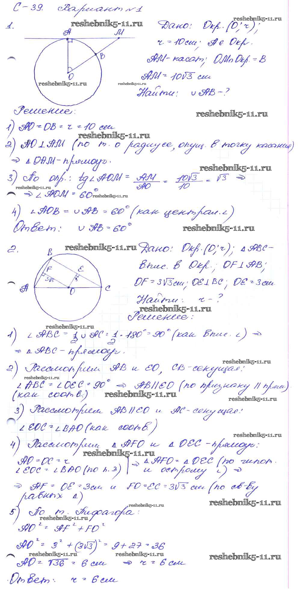 Решебник №1 / самостоятельная работа / ср №39 / вариант-1