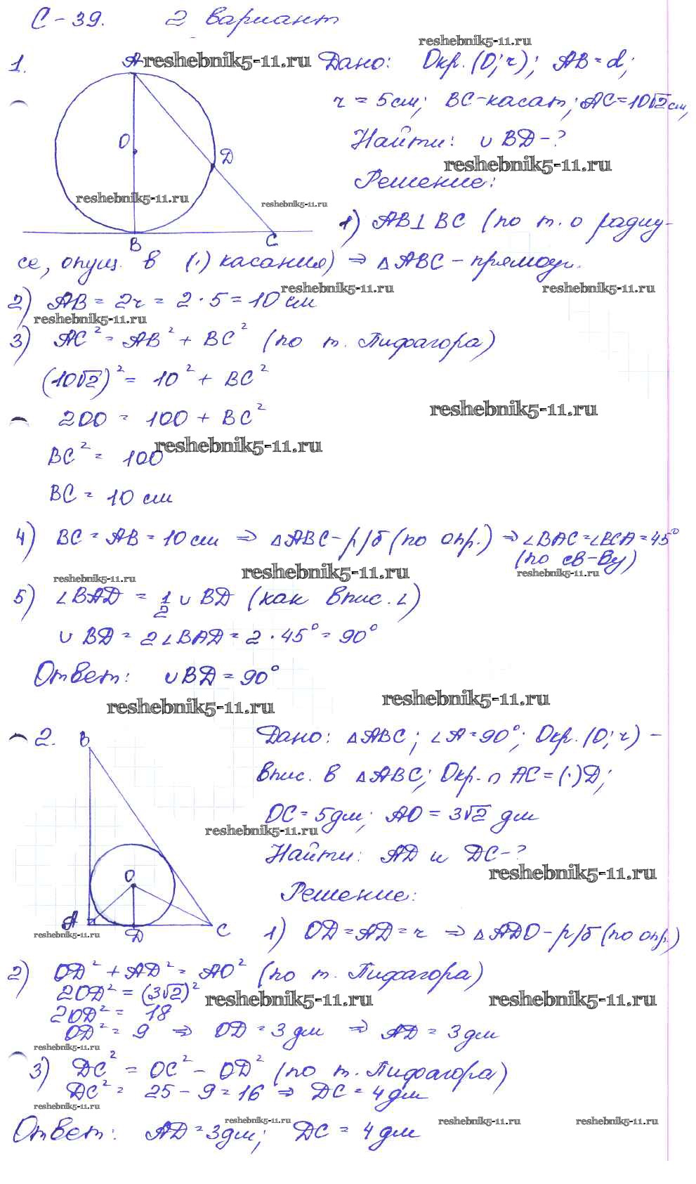 Решебник №1 / самостоятельная работа / ср №39 / вариант-2