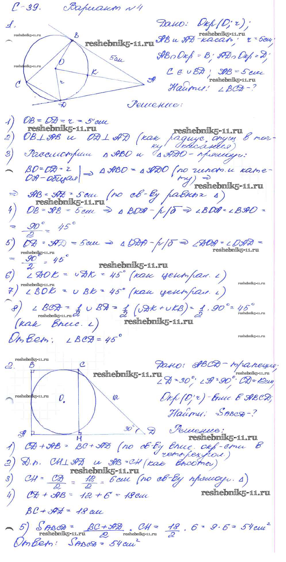Решебник №1 / самостоятельная работа / ср №39 / вариант-4
