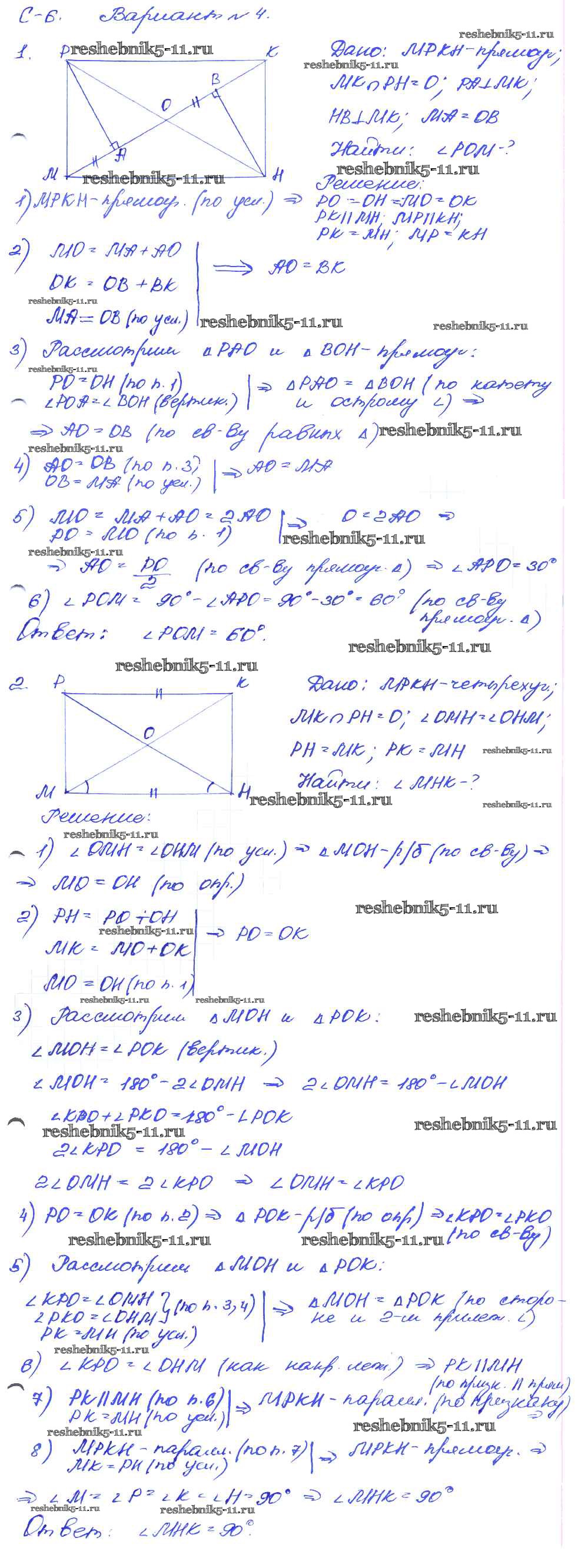 Готовая домашняя работа с ответами по Геометрии за 8 класс Зив, Мейлер Дидактические материалы Просвещение 2016 ФГОС - СР №6. Прямоугольник вариант-4
