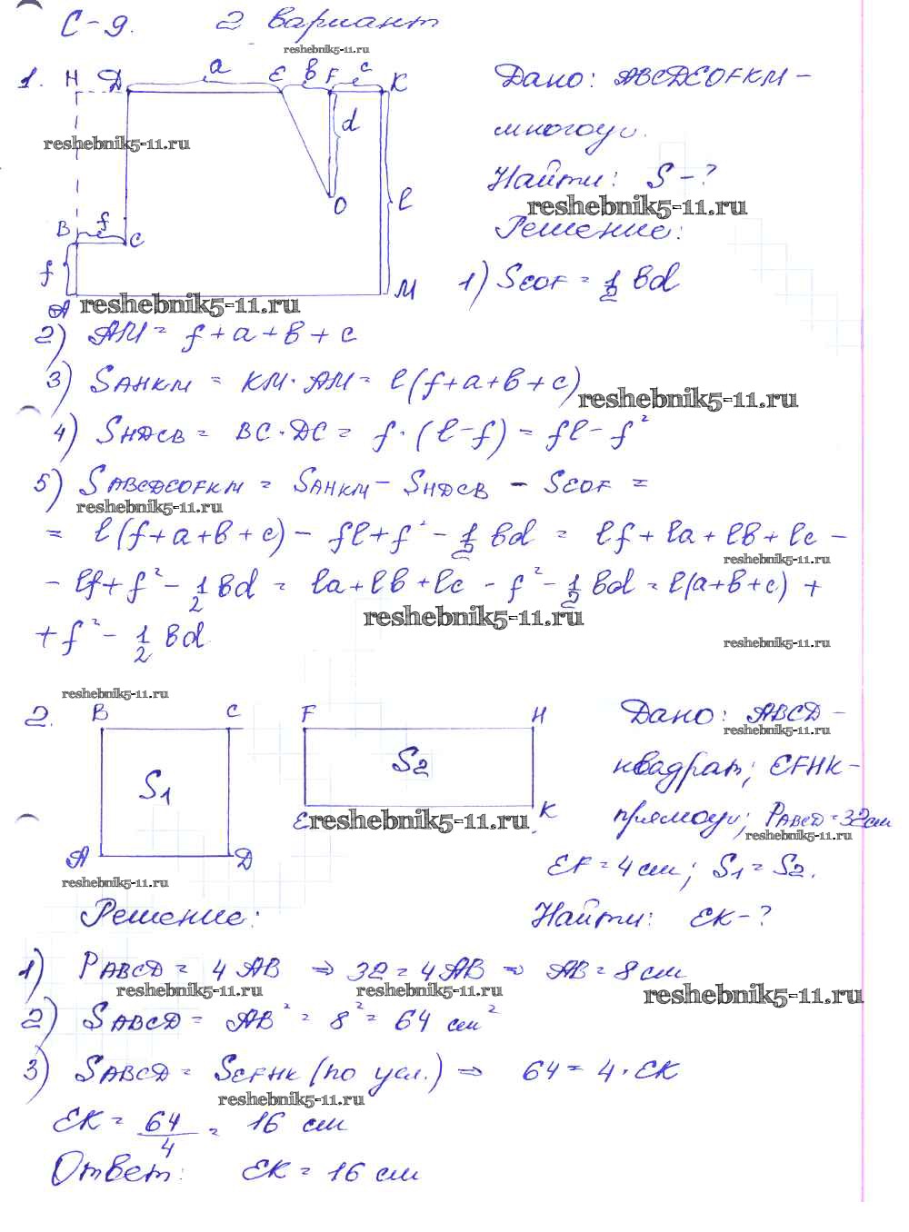 Готовая домашняя работа с ответами по Геометрии за 8 класс Зив, Мейлер Дидактические материалы Просвещение 2016 ФГОС - СР №9. Свойства площадей многоугольников, квадрата и прямоугольника вариант-2