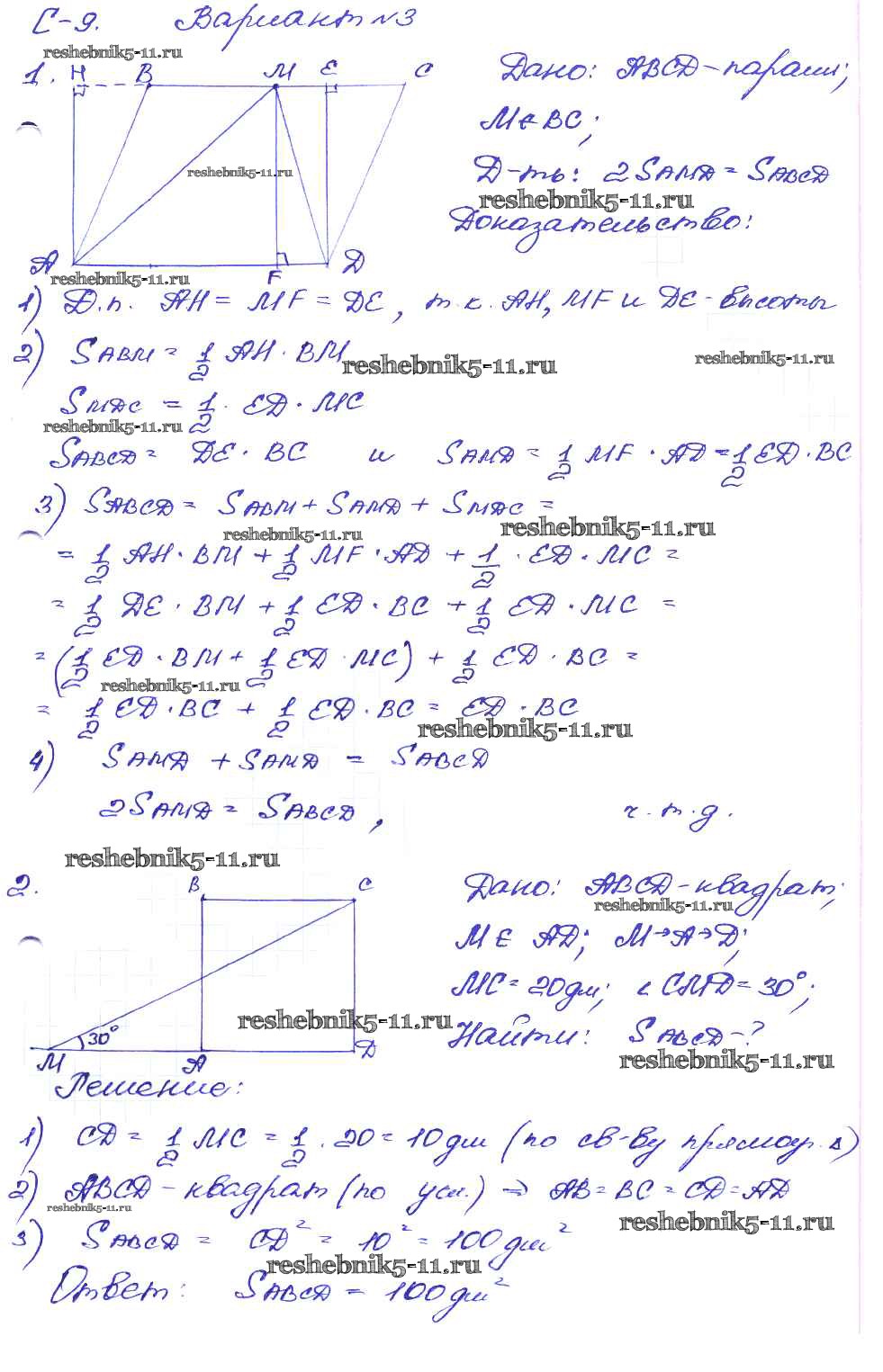 Готовая домашняя работа с ответами по Геометрии за 8 класс Зив, Мейлер Дидактические материалы Просвещение 2016 ФГОС - СР №9. Свойства площадей многоугольников, квадрата и прямоугольника вариант-3