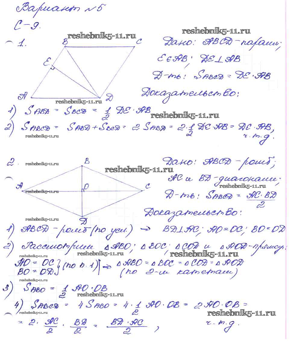 Готовая домашняя работа с ответами по Геометрии за 8 класс Зив, Мейлер Дидактические материалы Просвещение 2016 ФГОС - СР №9. Свойства площадей многоугольников, квадрата и прямоугольника вариант-5