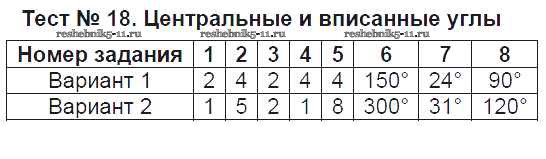 Готовая домашняя работа с ответами по Геометрии за 8 класс Рязановский, Мухин Контрольно-измерительные материалы (КИМ) Экзамен 2014 ФГОС - Тесты Тест №18. Центральные и вписанные углы