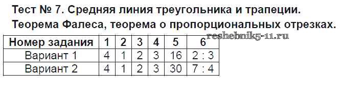 Решебник / тест / тест №7. Средняя линия треугольника и трапеции