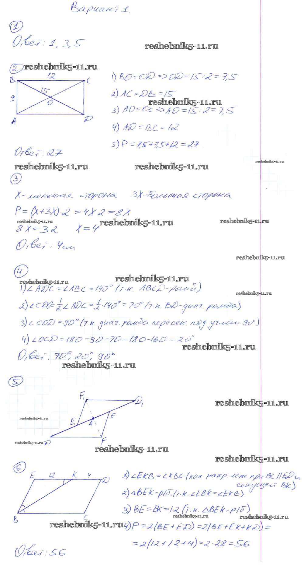 Готовая домашняя работа с ответами по Геометрии за 8 класс Мельникова Контрольные работы УМК Экзамен 2013 ФГОС - КР-1. Четырехугольники Вариант №1