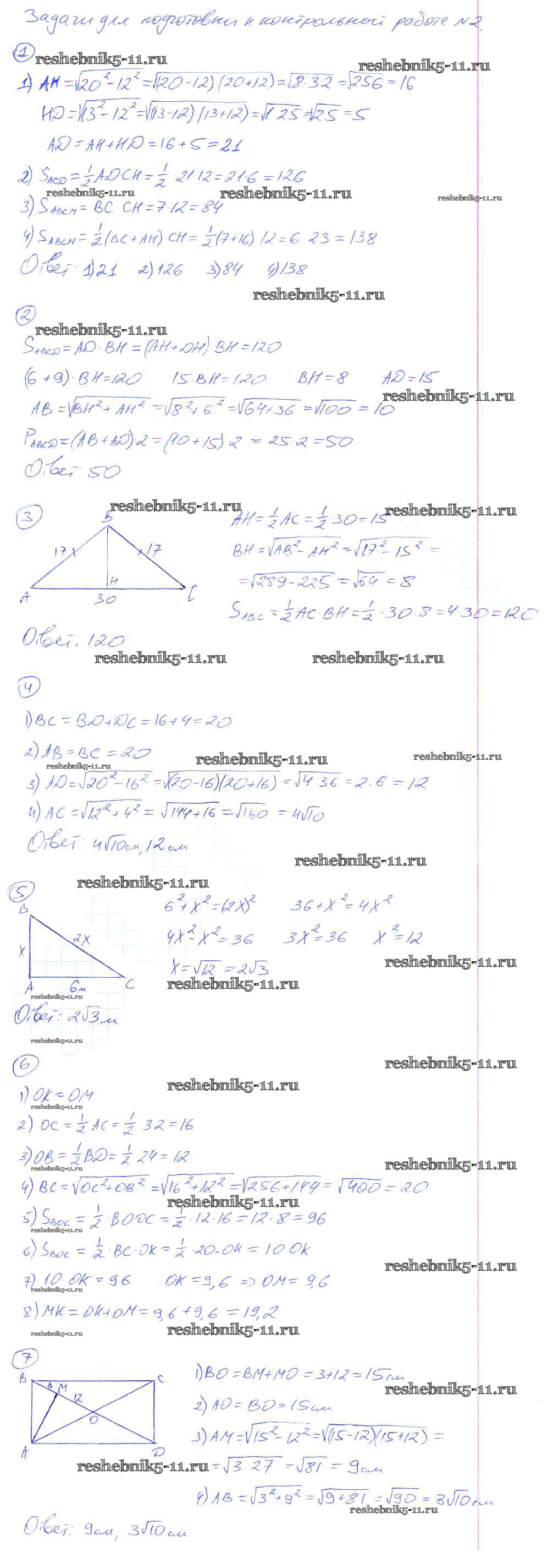 Готовая домашняя работа с ответами по Геометрии за 8 класс Мельникова Контрольные работы УМК Экзамен 2013 ФГОС - КР-2. Теорема Пифагора. Площадь Задачи для подготовки к контрольной работе