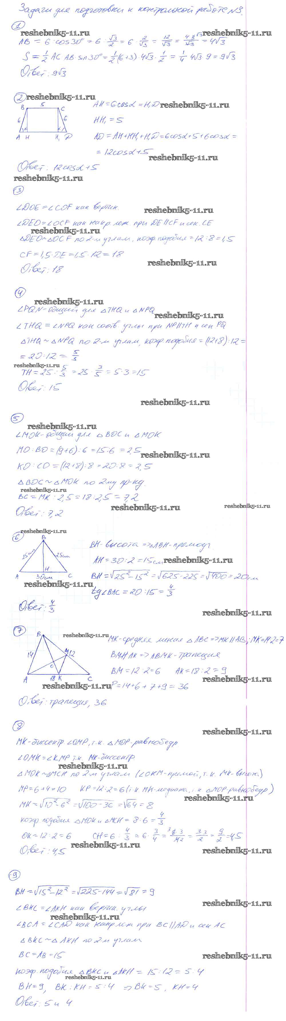 Решебник / кр-3. Подобные треугольники / задачи для подготовки к контрольной работе