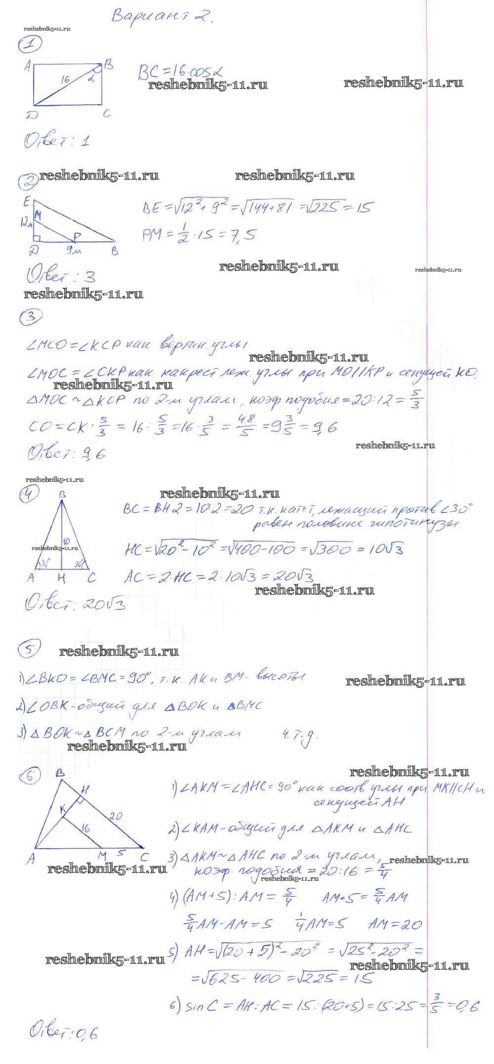 Решебник / кр-3. Подобные треугольники / вариант №2