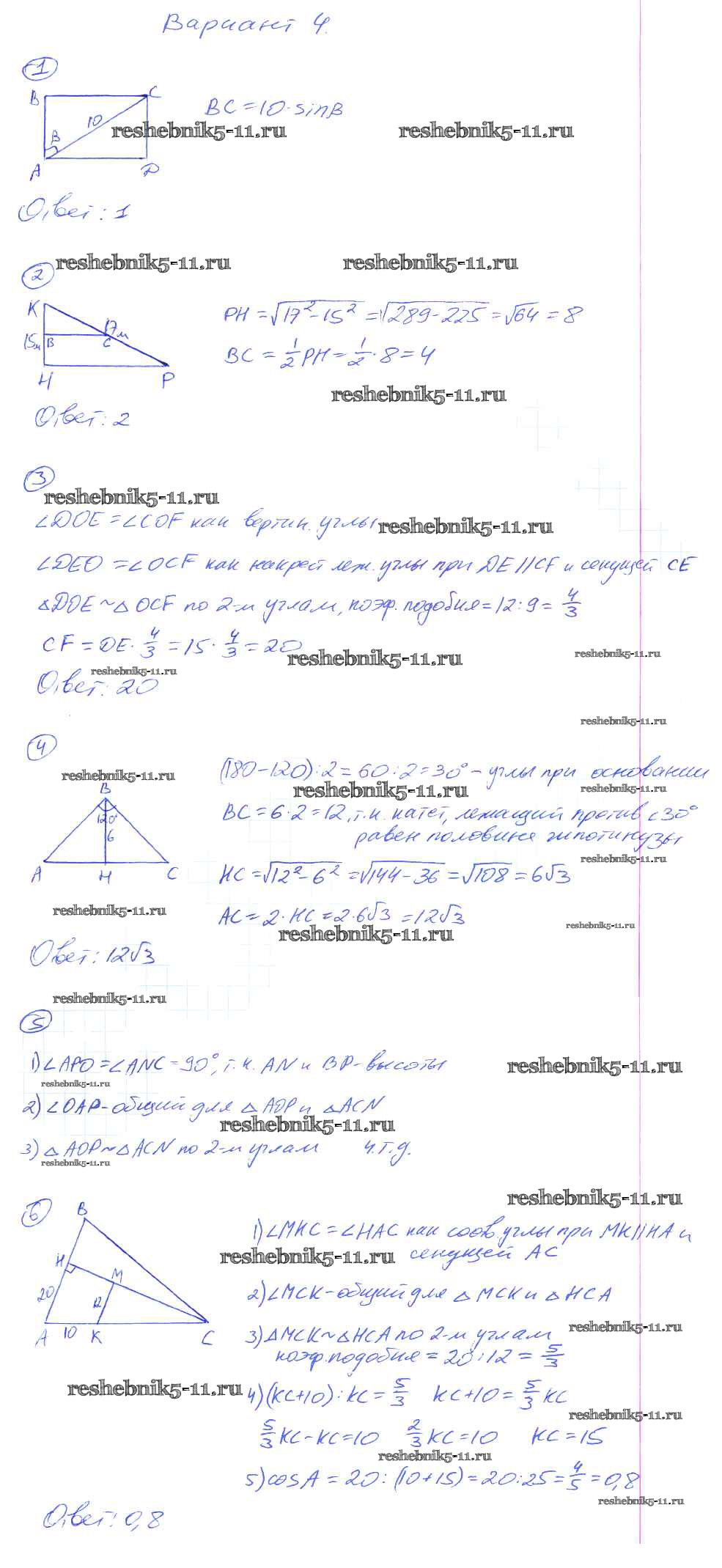 Решебник / кр-3. Подобные треугольники / вариант №4