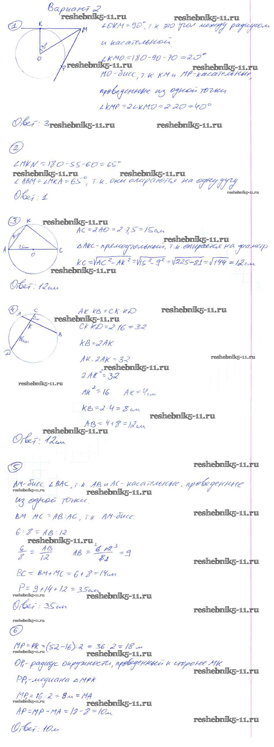 Готовая домашняя работа с ответами по Геометрии за 8 класс Мельникова Контрольные работы УМК Экзамен 2013 ФГОС - КР-4. Окружность Вариант №2