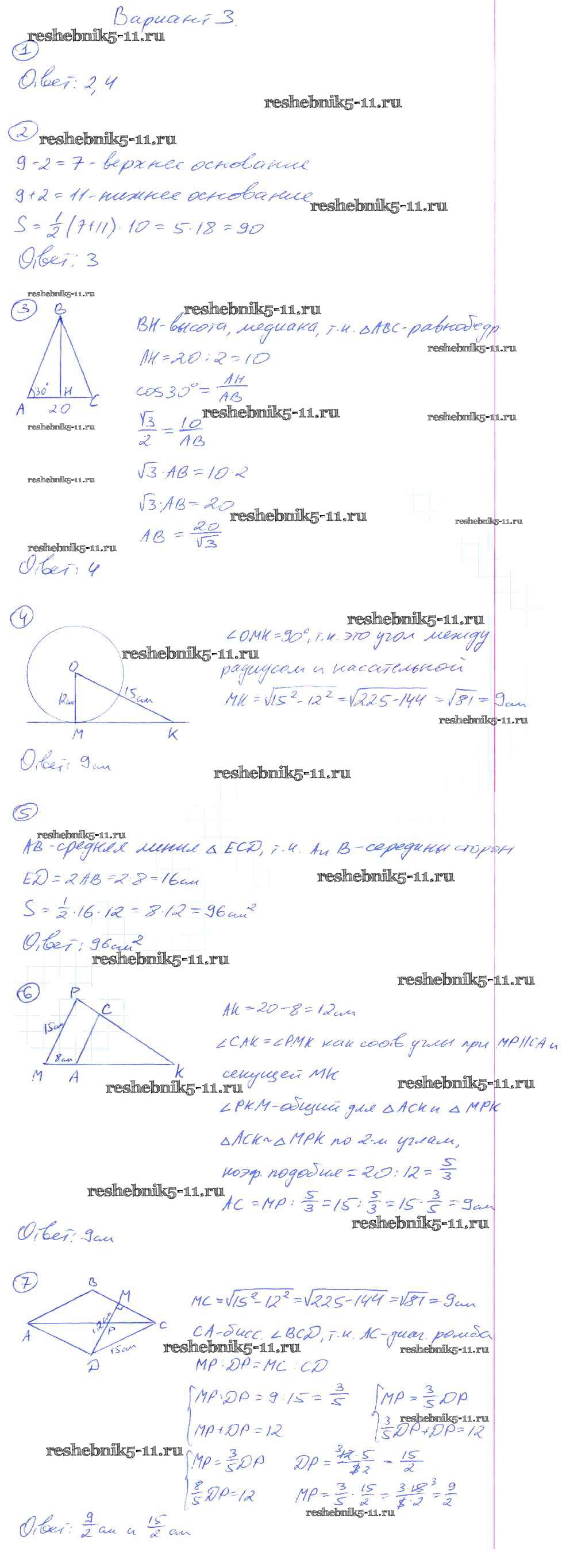 Готовая домашняя работа с ответами по Геометрии за 8 класс Мельникова Контрольные работы УМК Экзамен 2013 ФГОС - КР-5. Итоговая Вариант №3