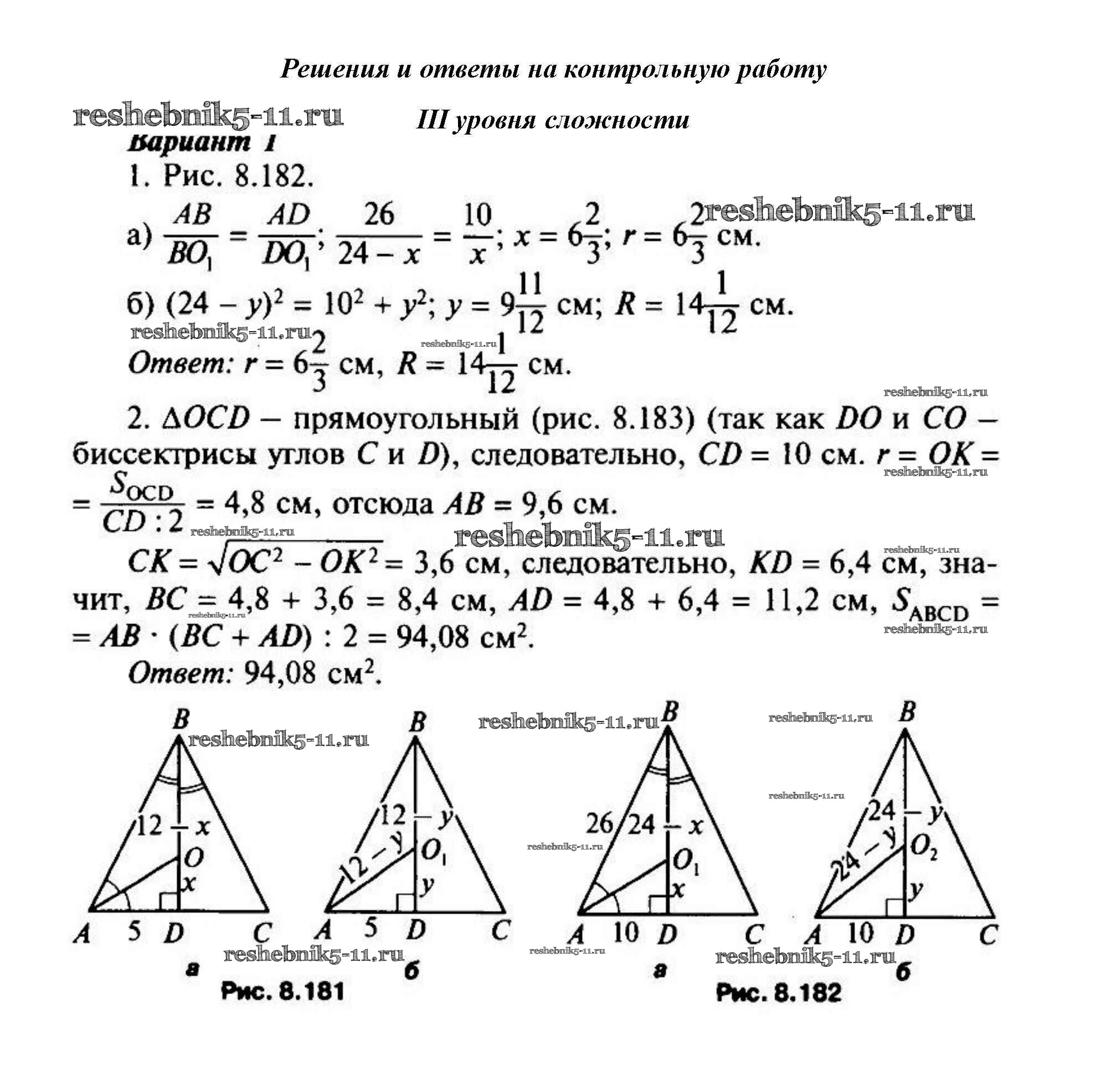 Готовая домашняя работа с ответами по Геометрии за 8 класс Гаврилова Поурочные разработки ВАКО 2010 - Уровень сложности 3 1