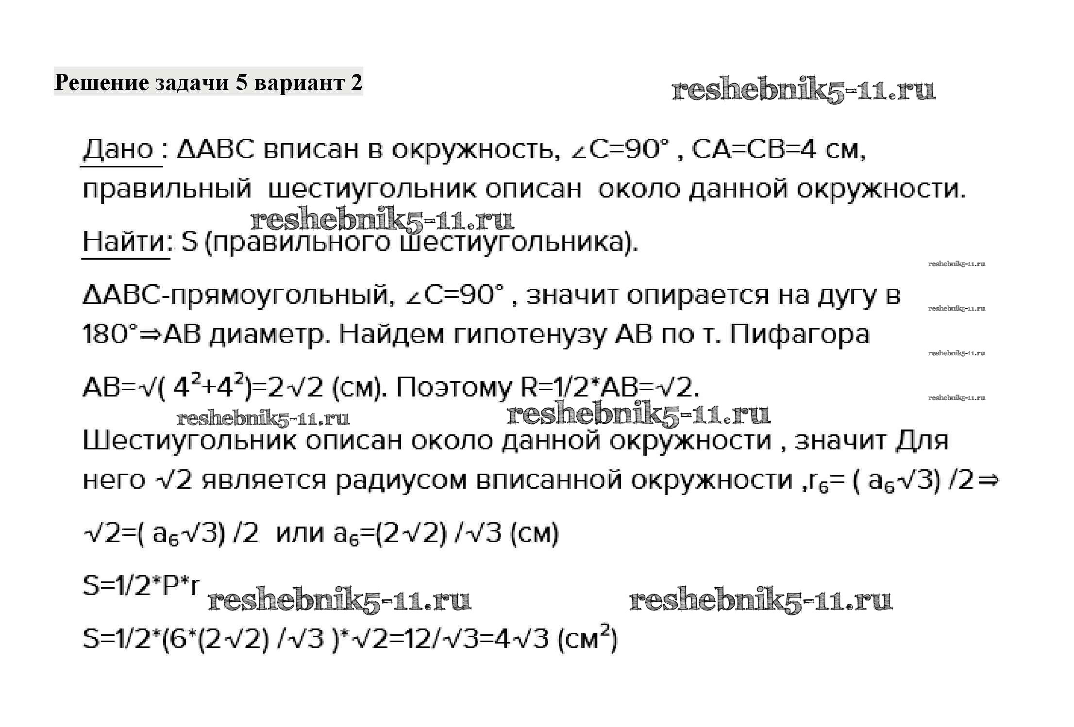 Готовая домашняя работа с ответами по Геометрии за 8 класс Гаврилова Поурочные разработки ВАКО 2010 - Контрольная работа 6 2