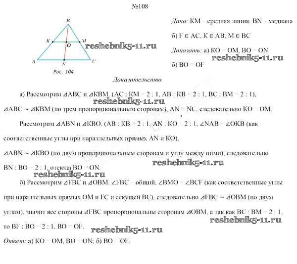 Готовая домашняя работа с ответами по Геометрии за 8 класс Казаков Учебник Народная асвета 2018 - Задачи 108